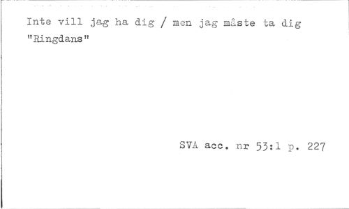 //// Inte vill jag ha dig / men jag måste ta dig "Ringdans" //// STÅ acc. nr 53:1 p. 227 ////