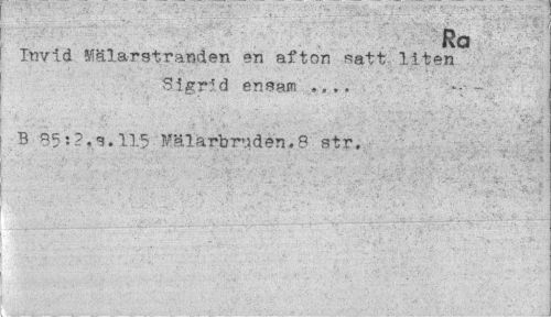 //// Ro - //// Invid Mälarstranden en afton satt liten Sigrid ensam //// B 85:?,s.115 Wälarbruden.S str, //// j : ' . ; ' - , • x.s //// I : ////