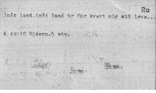 //// rJ^Ä^^l Ra //// Inåt land,Inåt land är för kvavt mig att leva.., //// A 49:10 T3jdern.6 str* //// ...> * ¦ ////