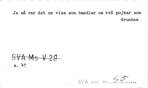 //// Ja så var det en visa som handlar om två pojkar som //// drunkna //// SV*^te-V^ //// s. ut //// z. <<r //// SVA ccc. ////