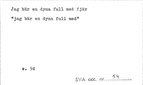 //// Jag bär en dyna full med fjär "jag "bär en dyna full med" //// s. 94 //// SVA ccc. nr...i.7... ////