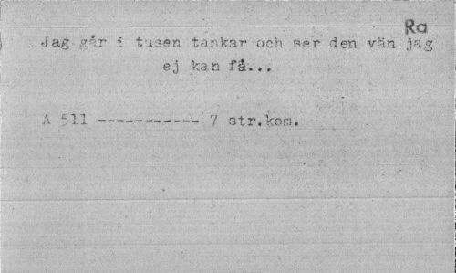 //// Ra //// . »Jag går ! tusen tankar ooh «ér den vän jag //// ej kan få... //// A -1.1---7 str.kom. ////