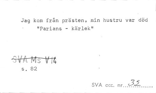 //// Jag kom från prästen, min hustru var död "Parians - kärlek" //// s. 82 //// SVA ccc. nr...<r^-rrT... ////