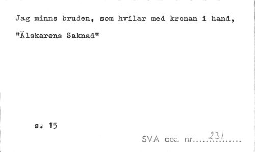 //// Jag minns bruden, som hvilar med kronan i hand, "Älskarens Saknad" //// s. 15 //// SVA ccc. nr...v... ////