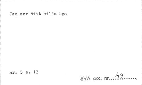 //// Jag ser ditt milda öga //// nr* 5 s* 13 Ajq //// SVA ccc. nr... ////