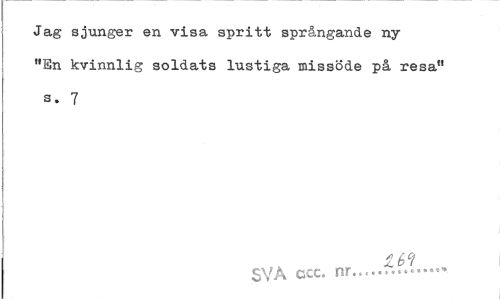 //// Jag sjunger en visa spritt sprängande ny "En kvinnlig soldats lustiga missöde på resa" s. 7 //// " bci //// SVA ccc. nr... ////