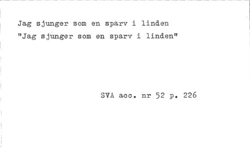 //// Jag sjunger som en sparv i linden "Jag sjunger som en sparv i linden" //// SIA aoc. nr 52 p. 226 ////