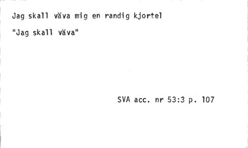 //// Oag skall väva mig en randig kjortel "Jag skall väva" //// SVA acc. nr 53:3 p. 107 ////