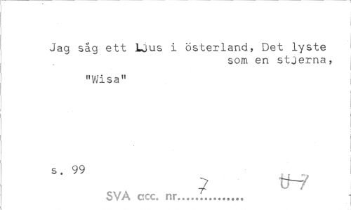 //// Jag såg ett Ljus i österland, Det lyste //// som en stjerna, //// "Wisa" //// s. 99 //// 7 tf~/ //// SVA ccc. nr... ////
