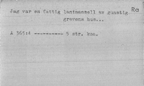 //// Ra //// Ja g va r en fattig lan t marr.se 11 av gunst ig //// grevens hus... //// A 365:4---5 str. kom. //// ¦ ////
