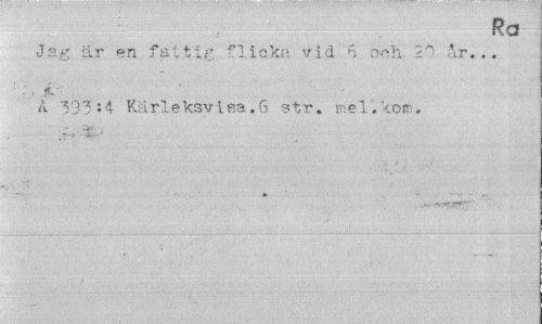 //// KCJ //// -v* //// Jag är en fa t tig flicka vid '6 och Ar... //// A 3°,3:4 Karleksvisa.G str. mel.kom. //// . //// ¦ ////