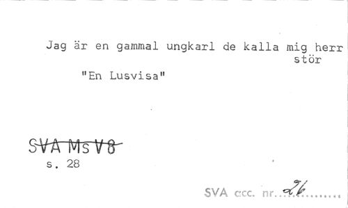 //// Jag är en gammal ungkarl de kalla mig herr //// stör //// "En Lusvisa" //// svA-wm- //// s. 28 //// SVA ccc. nr..M!A... ////