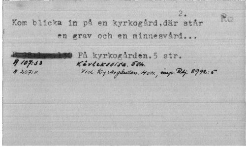 //// 2. //// Korn "blicka in på en kyrkogård,där står •n grav och en minnesvård... //// '^¦MMHMMMW Få kyrkogården. 5 str. //// tf Stf- J > fi vJctcSS/Sa. ////
