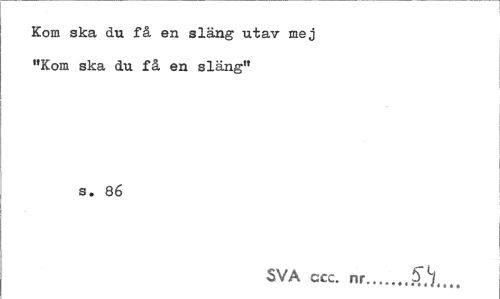//// Kom ska du få en släng utav mej "Kom ska du få en släng" //// s. 86 //// SVA ccc. nr..A .*...'... ////