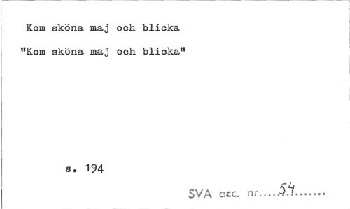 //// Kom sköna maj och blicka "Kom sköna maj och blicka" //// s. 194 //// SVA acc. nr.. ... ////