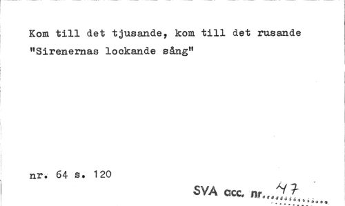 //// Kom till det tjusande, kom till det rusande "Sirenernas lockande sång" //// nr. 64 s. 120 //// SVA ccc. nr..A .*...'... ////