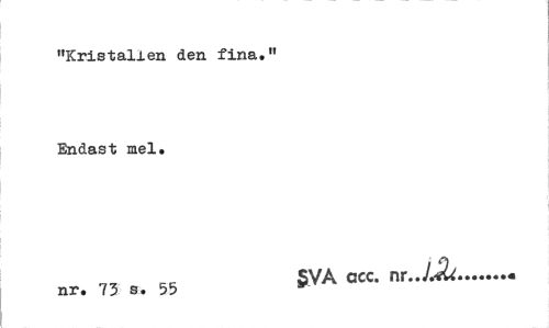 //// "Kristallen den fina." Endast mel. //// KK §VA ccc. nr..JJU... //// nr. 73 s. 55 * ////