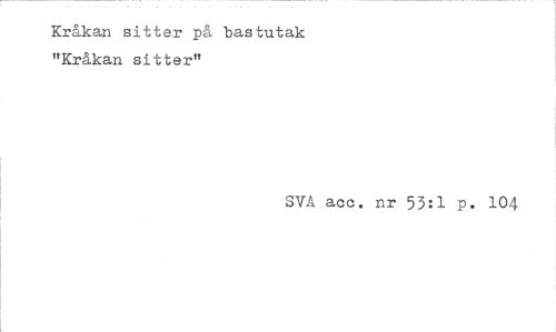 //// Kråkan sitter på bastutak "Kråkan sitter" //// SVA acc. nr 55:1 p. 104 ////