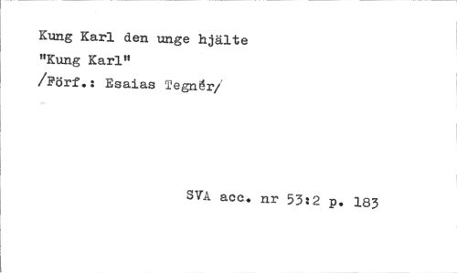 //// Kung Karl den unge hjälte »Kung Karl" //// /Förf.: Esaias Tegnér/' //// SVA ace. nr 53! 2 p. 183 ////