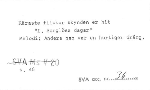 //// Käraste flickor skynden er hit //// "I. Sorglösa dagar" Melodi; Anders han var en hurtiger dräng. //// s . 46 //// SVA ccc. nr. //// ...IL ////