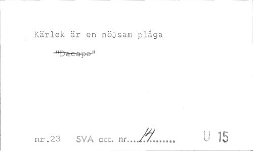 //// Kärlek är en nöjsam plåga ¦"Dacapcr" //// nr . 23 SVA ccc. nr. J±...U 15 ////