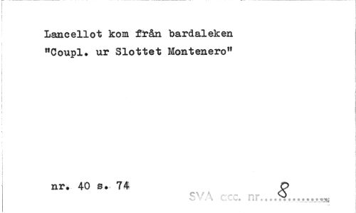 //// Lancellot kom från bardaleken "Coupl. ur Slottet Montenero" //// nr. 40 s. 74 £> //// SVA nr... A...^ ////