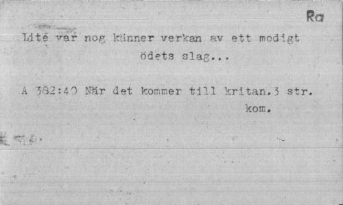 //// -i. Ra //// Lite var nog känner verkan av ett modigt //// ödets slag... //// A 382:40 När det kommer till kritan.3 str. //// kom. //// \ " - • ////