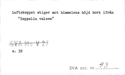 //// Luftskeppet stiger mot himmelens höjd bort ifrån "Zeppelin valsen" //// •SVA Mb V ?J //// s. 39 //// SVA ccc. nr... ////