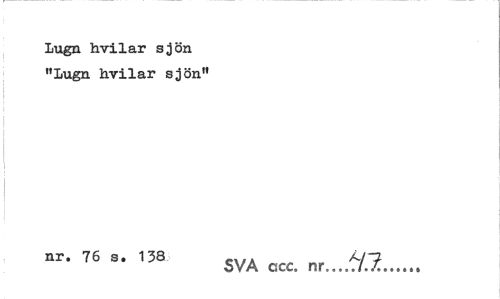 //// Lugn hvilar sjön "Lugn hvilar sjön" //// nr. 76 s. 138 ewA A/7 //// SVA ace, nr...l,L... ////