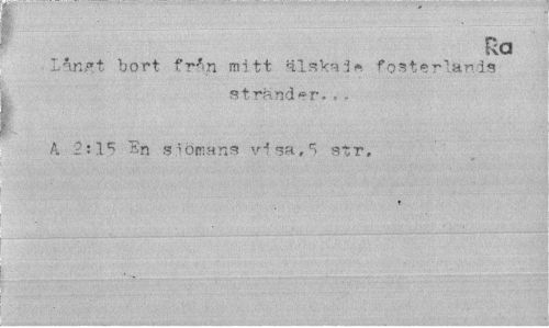 //// K //// Ra //// Lan/» t bort fr*>n mitt -ilska i* fosterlands //// stränder,. //// A. 2:15 En si ömans vi sa, 5 str. ////