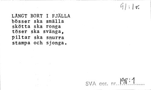 //// 4M* //// LÅNGT BORT I FJÄLLA bösser ska smälla skötta ska ronga töser ska svänga, piltar ska snurra stampa och sjonga. //// SVA ccc. nrJftö/.l... ////