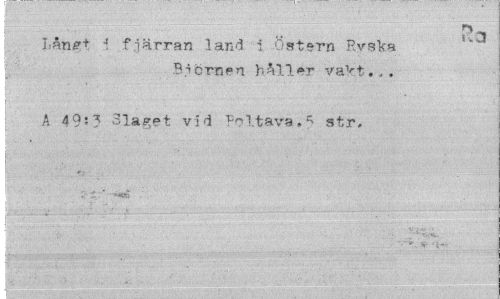 //// Pcj //// j Långt i f,i ärran land i Östern Pvska //// Biörnen håller vaVt•,. //// A 49:5 Slaget vid Foltava,5 str. ////