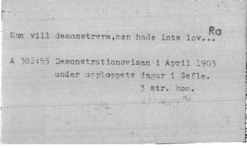 //// - t,. ¦ ¦ . :.. ...- - - ' "*;¦¦ - '. -- » * . ¦ //// Rq //// : Lan vill demonstrera,man hade inte lov... //// i A 382:55 Demonstrationsvisan i April 1903 under upploppets dagar i defle. //// |if HHH * 3 str. kom. //// 1 ¦"'¦"* " ////