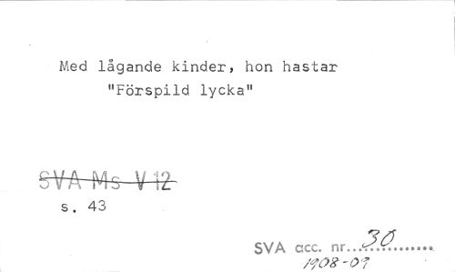 //// Med lågande kinder, hon hastar "Förspild lycka" //// s. 43 //// SVA ccc. nr...<r;... //// MOZ-O'1 ////