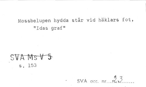 //// Mossbelupen hydda står vid häklars fot, "Idas graf" //// s. 153 //// SVA acc. nr... //// Ii... ////