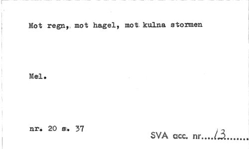 //// Mot regn,, mot hagel, mot, kulna stormen Mel. //// nr. 20 s. 37 2 //// SVA acc. nr...U... ////