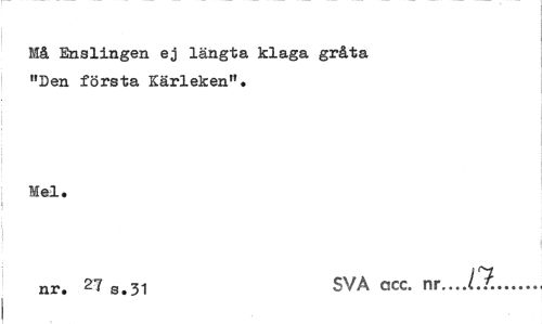 //// Må Enslingen ej längta klaga gråta "Den första Kärleken". //// Mel. //// nr. 27 s.31 SVÅ cjcc. nr. ...12... ////
