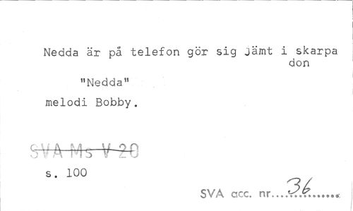 //// Nedda är på telefon gör sig jämt i skarpa //// don //// "Nedda" melodi Bobby. //// s. 100 //// SVA ccc. nr...;...c ////