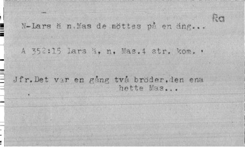 //// Ra //// ! N-Lars fe n.Ifas de möttes p' en äng... //// A 352:15 lärs ä, n, Nas. 4 str. kom. < //// _ //// : Jfr.Det vn.r en ft^ng två bröder, len ena //// =! hette Mas., . //// j //// J '.i t \ „ , - ;ä ////