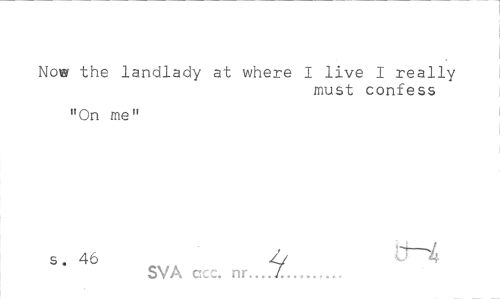 //// Now the landlady at where I live 1 really //// must confess //// "On me" //// s. 46 /j //// SVÅ ccc. nr.. ////