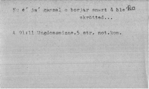 //// N>: é' ,1a' gammal. o börjar snnrt h //// skrötted... //// A 91:11 Ungdomsminne.5 str. not.kom. ////