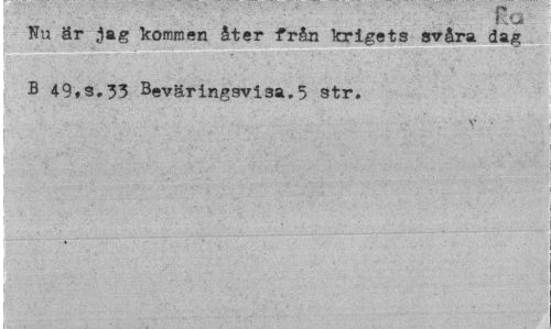 //// Ka //// Nu är jag kommen åter från krigets svåra dag B 49*s.33 Beväringsvisa.5 str. //// i ////