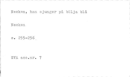 //// Necken, han sjunger på bölja blå //// Necken //// s. 255-256, //// SVA acc.nr. 7 ////