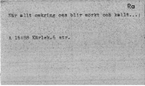 //// Ra //// När allt omkring oes blir mörkt ooh kallt...| //// .. . - , •'. . .-., •, ¦¦ - .. - t ¦¦¦ •¦>• -t- ' - '"*' • -.v ^ .. *.- * •. • •' ' '• •¦ . ' '; \ * //// ' % ' - " . 'i* ' ' *' ' ' • > * i 16:88 Kärlek,6 str. //// • ...:; ////
