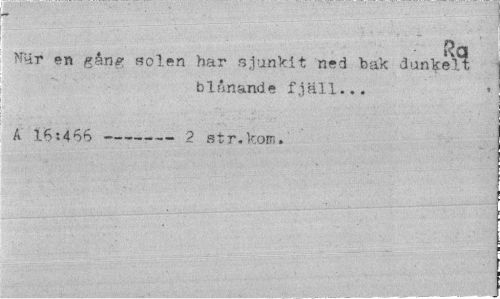 //// v--:---.- • //// När en gån^ solen har sjunkit ned bak dunkel?, //// blånande fjäll... //// A 16:466 --- 2 str-kom. ////