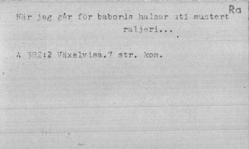 //// Ra //// När jäg gar för babords halsar uti muntert //// ra1jeri.,. //// A 302:2 Växelvisa.7 str. kom. ////