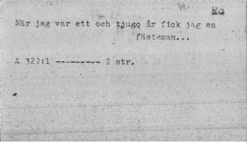 //// När jag var ett och tjugq år fick jag en //// .'fäs teman.., //// A 322:1 --- 2 str. ////