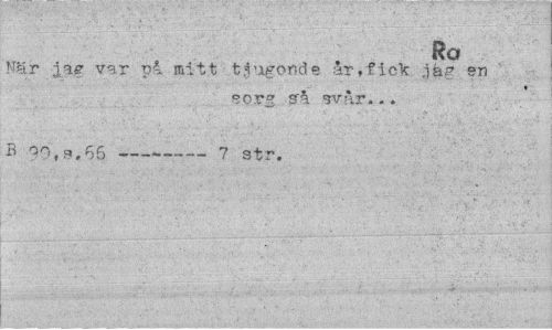 //// Ro //// När jaft var på. mitt tjugonde år,fick jäg en //// eorg afå. svår. //// B 90,s,66---- 7 str. ////