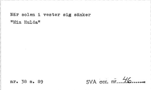 //// När solen i Tester sig sänker "Min Hulda" //// nr. 38 s. 89 SVA ccc. nr... ___ ////