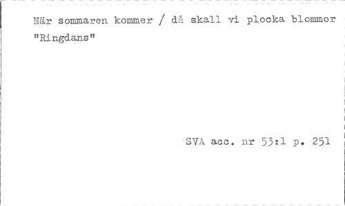 //// Här sommaren kominer / då skall vi plocka blommor "Ringdans" //// SVA acc. nr 53il P. 251 ////